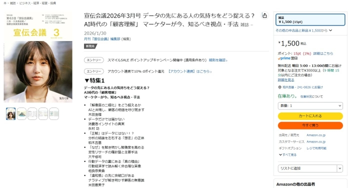 『宣伝会議』1/30号の特集は、「宣伝会議2026年3月号 データの先にある人の気持ちをどう捉える? AI時代の「顧客理解」 マーケターが今、知るべき視点・手法」です。