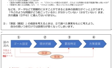 2年間かけて行う研究の中間発表に立ち合い、2年生全員に対する「問題解決の考え方」のフォローアップ(アドバイス、フィードバック)にこちらの資料を使いました。